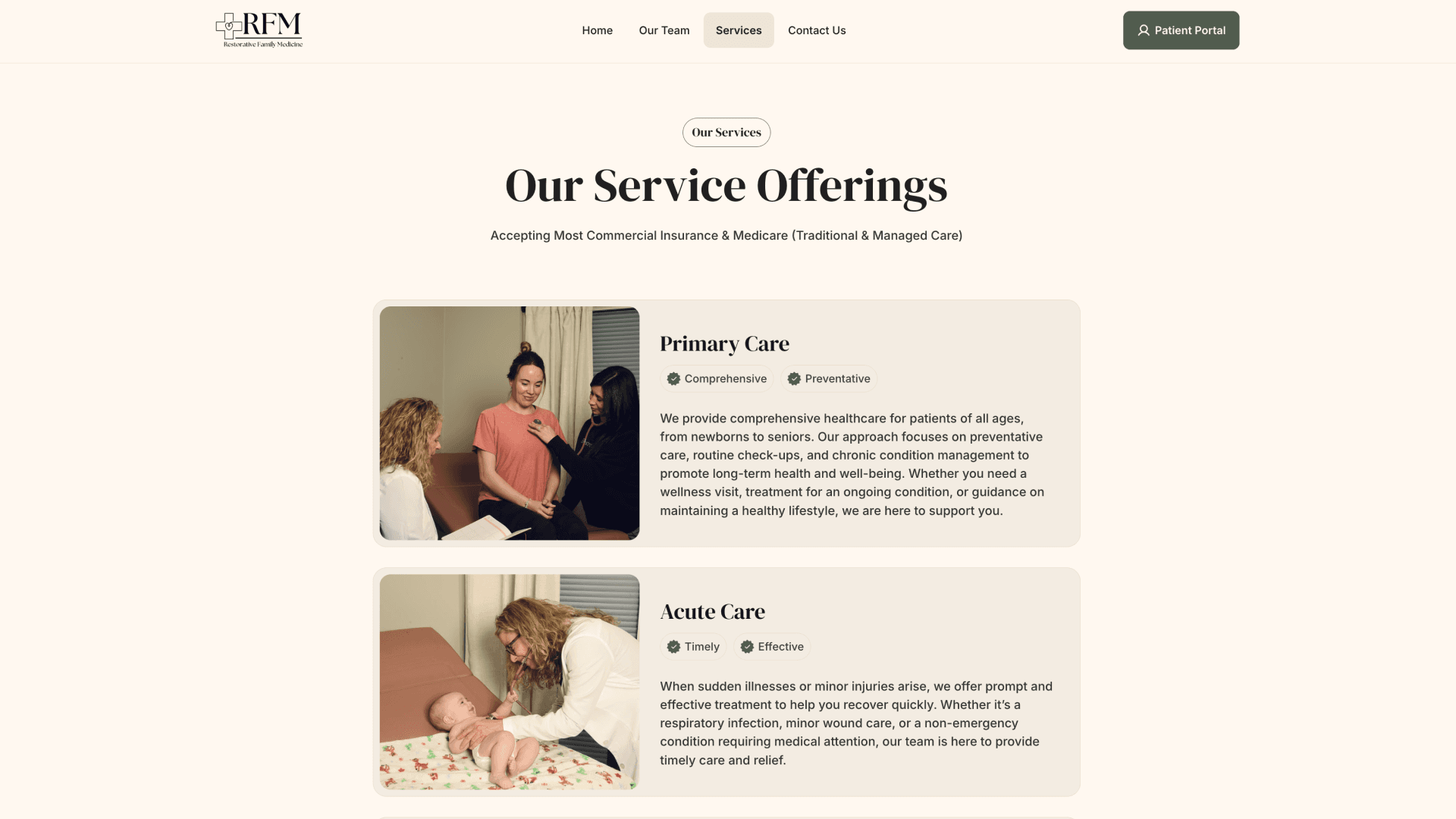 Restorative Family Medicine needed a digital presence that reflected their patient-centered, holistic approach to care—something often lost in traditional healthcare websites. The site had to clearly communicate a wide range of services while remaining approachable and easy to navigate for patients of all ages.